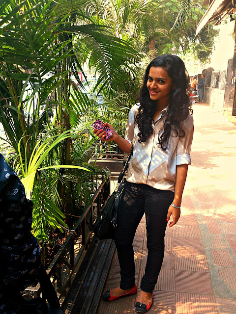 Since I am doing BMS, and since it is mandatory to wear formal clothes, I wore a Chevron printed silk shirt (Love this printed trend ofcourse) half tucked in, half let loosely to create a asymmetrical hemline!