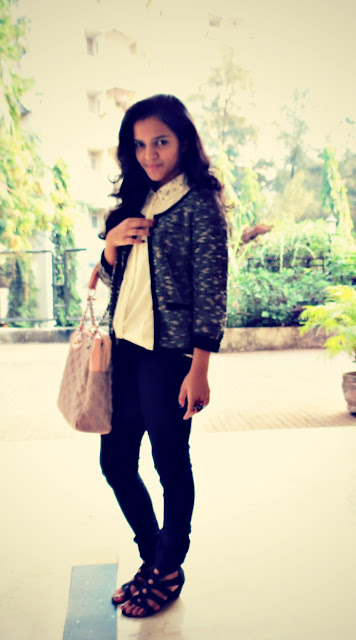 | dress- veromoda (previously worn here )stockings- malaysia, shoes- only, belt- asos.com, clutch - accessorize, cuff - bandra. Smile - borrowed from my friend! heeheh! |